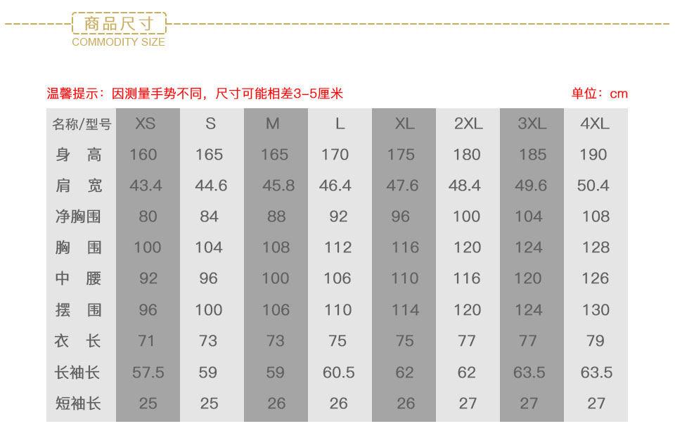 - 本產品共8個尺碼:XS、S、M、L、XL、2XL、3XL、4XL 覆蓋99.5%的人群 >>>查看尺碼表>