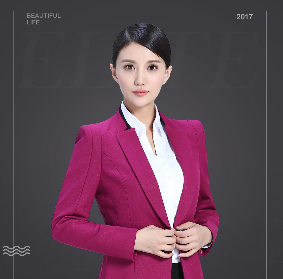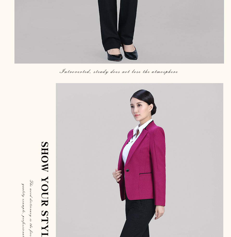 相關(guān)改良版翻領(lǐng)玫紅色時尚職業(yè)套裝FX11推薦