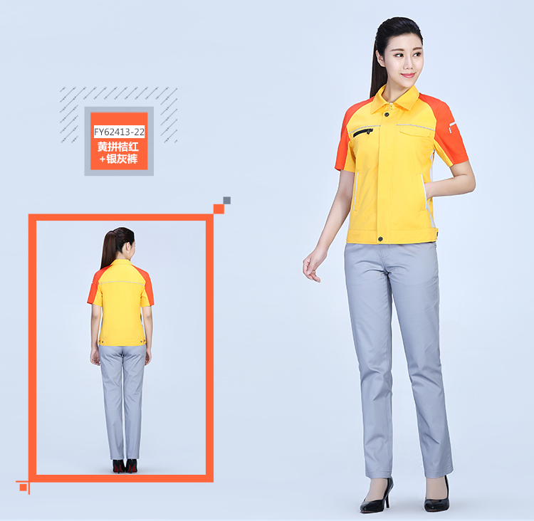 - 標簽:滌棉撞色拼接滌棉細斜短袖工作服FY624