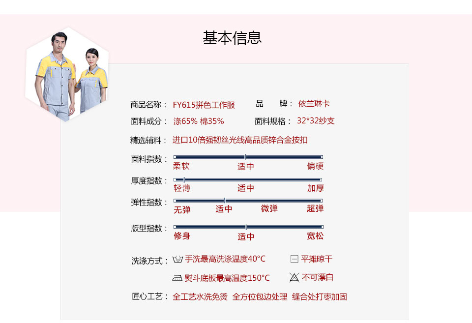 - 標簽:夏季時尚拼色滌棉細斜短袖工作服FY620