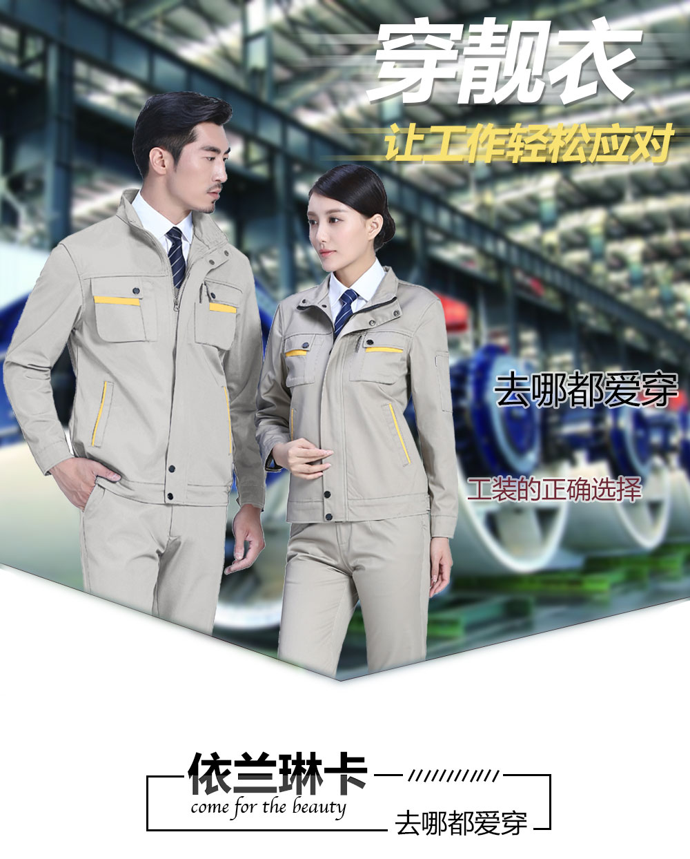 相關灰色高領拼色滌棉細斜短袖工作服FY610推薦